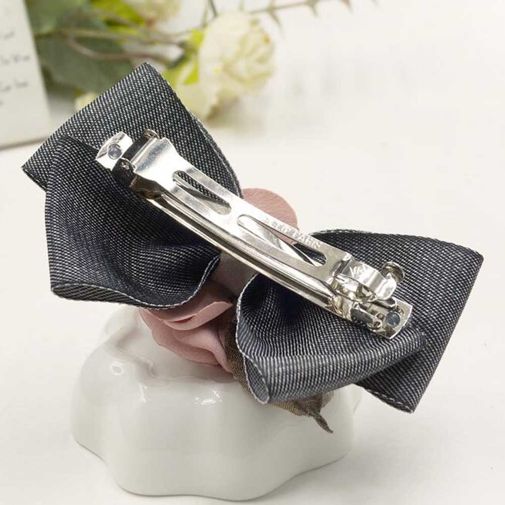 Home > Artificial Rose Flower Cloth Hair Pin Handmade Bowknot Hair Barrettes; Grey