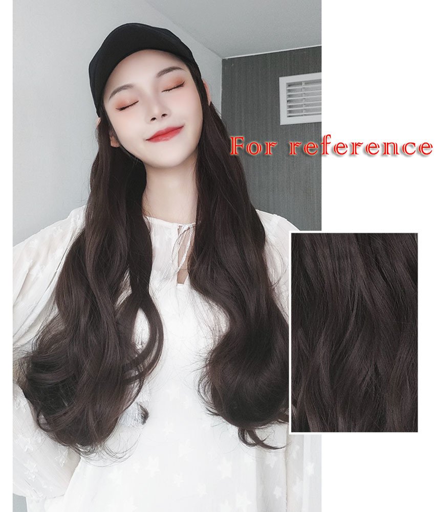 Baseball Cap with Natural Black Synthetic Long Wavy Hair Attached for Womens Adjustable Wig Cap Baseball Cap with Natural Black Synthetic Long Wavy Hair Attached for Womens Adjustable Wig Cap