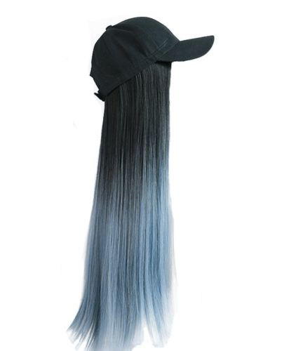 Black Baseball Cap with Grey Blue Long Straight Wig Mixed Color Synthetic Hair Extension Hat Wig Cap Black Baseball Cap with Grey Blue Long Straight Wig Mixed Color Synthetic Hair Extension Hat Wig Cap