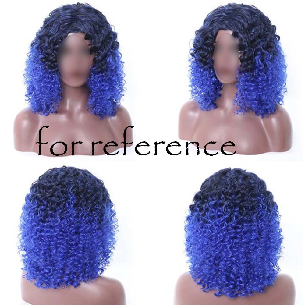 Black Blue Afro Hair Wig 2Tone Short Curly Fluffy Wigs with Bangs Synthetic Hair Full Wig,16 inch Black Blue Afro Hair Wig 2Tone Short Curly Fluffy Wigs with Bangs Synthetic Hair Full Wig,16 inch