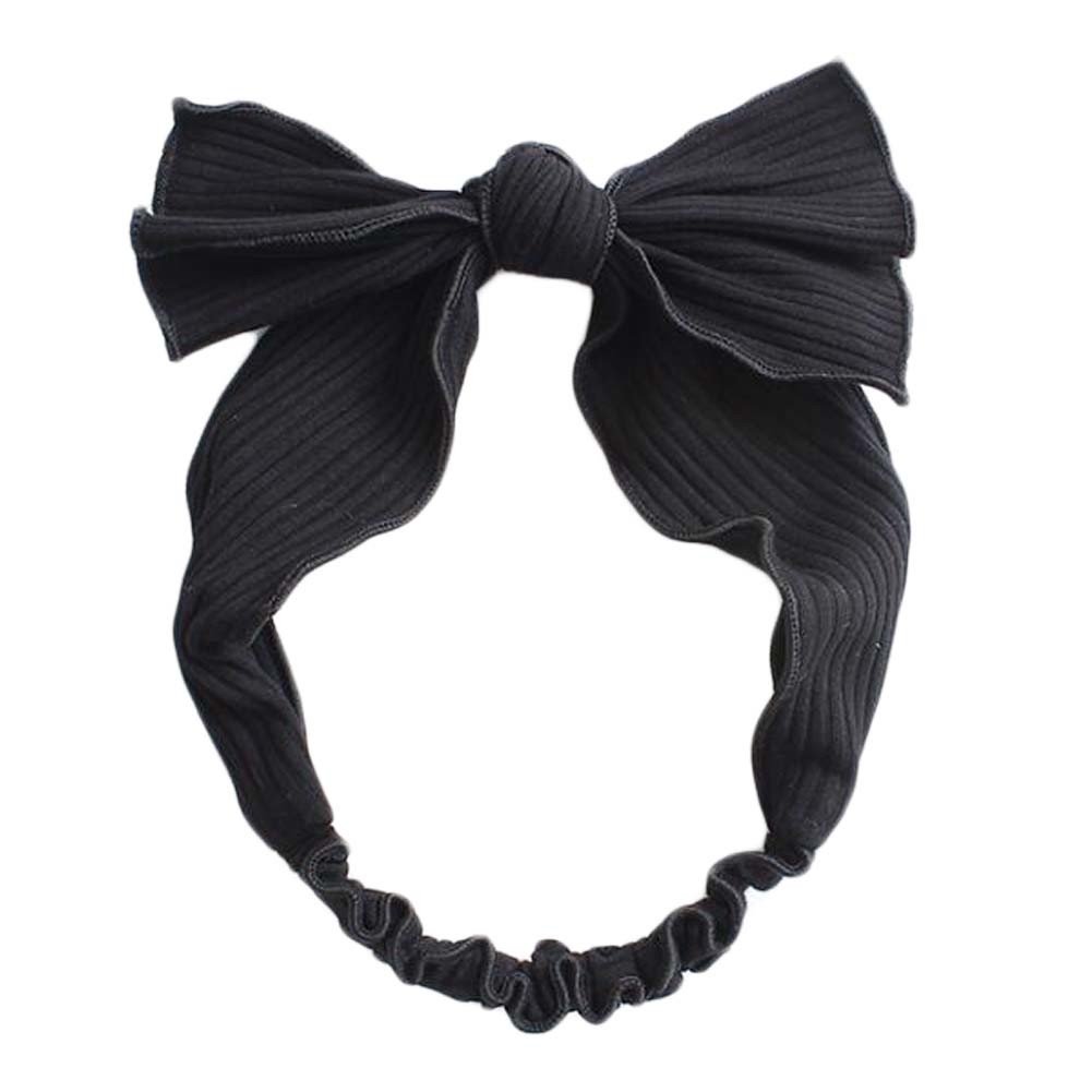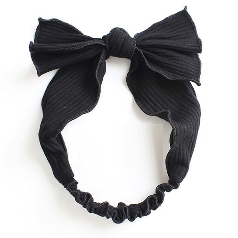 Home > Black Simple Bowknot Stretch Hairband Solid Color Headband Out Wide Hair Ribbon Headwrap