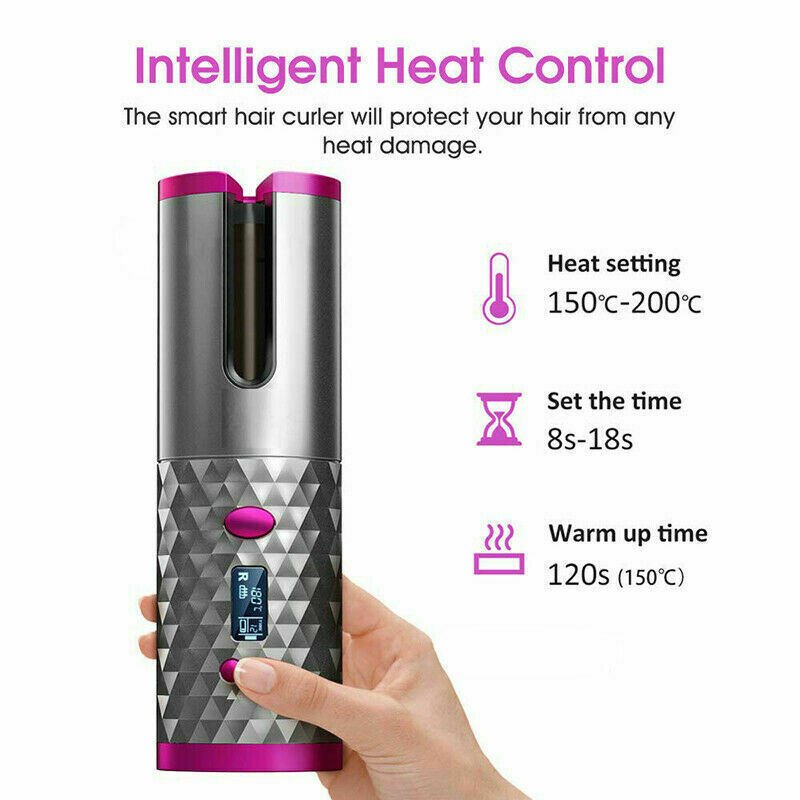 Home > Electric LCD Display Automatic Rotating Cordless Hair Curler Fast Curling Iron Tongs Portable USB Rechargeable With Comb Safe USB Cordless Automatic R