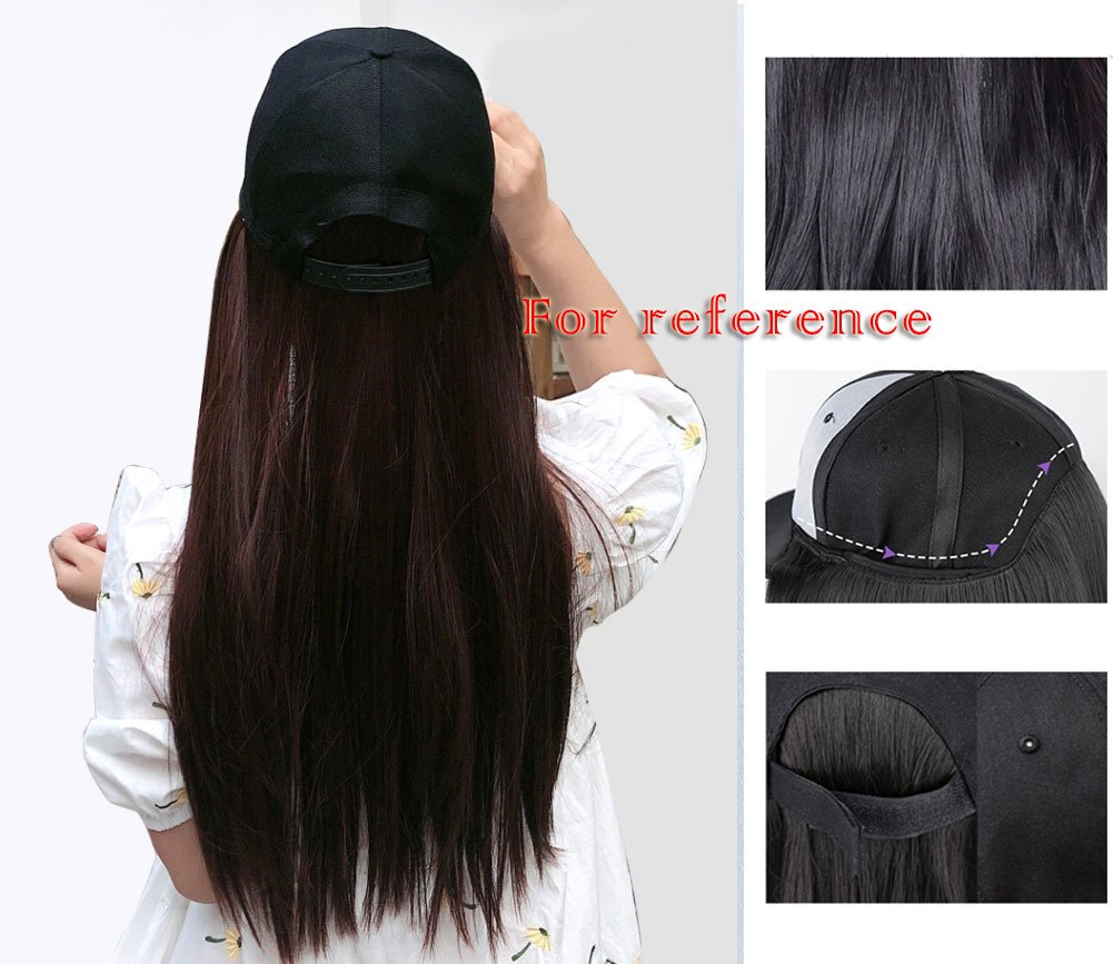 Home > Hat Hair Extension Baseball Cap With Black Long Straight Synthetic Hair Attached Adjustable Wig Cap