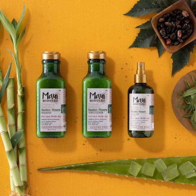 Maui Moisture Bamboo Fibers Conditioner. Maui Moisture starts with a unique blend with aloe vera juice and is infused with pure coconut water, unlike some other conditioners that start with deionized water as their first ingredient listed. Exotic bamboo fibers are infused into this fortifying, rich conditioner blend with castor oil and neem oil to help strengthen and repair over-styled, damaged hair. It helps to renew and soften treated, natural or transitioning hair types and encourage healthy-looking glow. Contains no mineral oil, no parabens, no silicon, no gluten, no SLS, no sulfated surfactants, no synthetic dye, no ales.