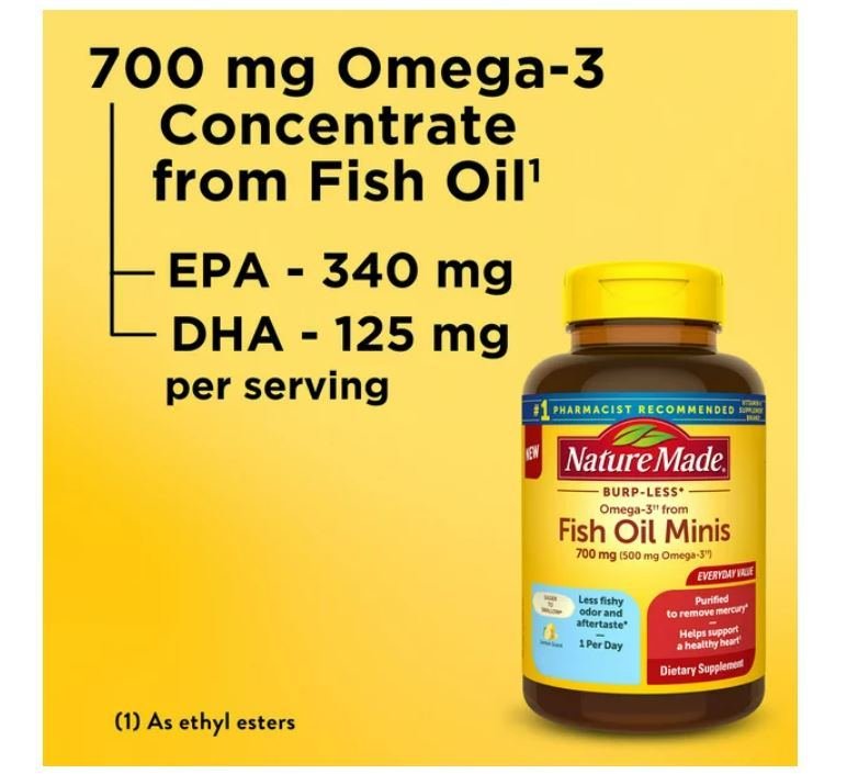 Nature Made Burp Less Omega 3 Fish Oil Supplements 700 mg Minis Softgels, 120 Count Nature Made Burp Less Omega 3 Fish Oil Supplements 700 mg Minis Softgels, 120 Count Nature Made Burp Less Omega 3 Fish Oil Supplements 700 mg Minis Softgels, 120 Count Nature Made Burp Less Omega 3 Fish Oil Supplements 700 mg Minis Softgels, 120 Count
