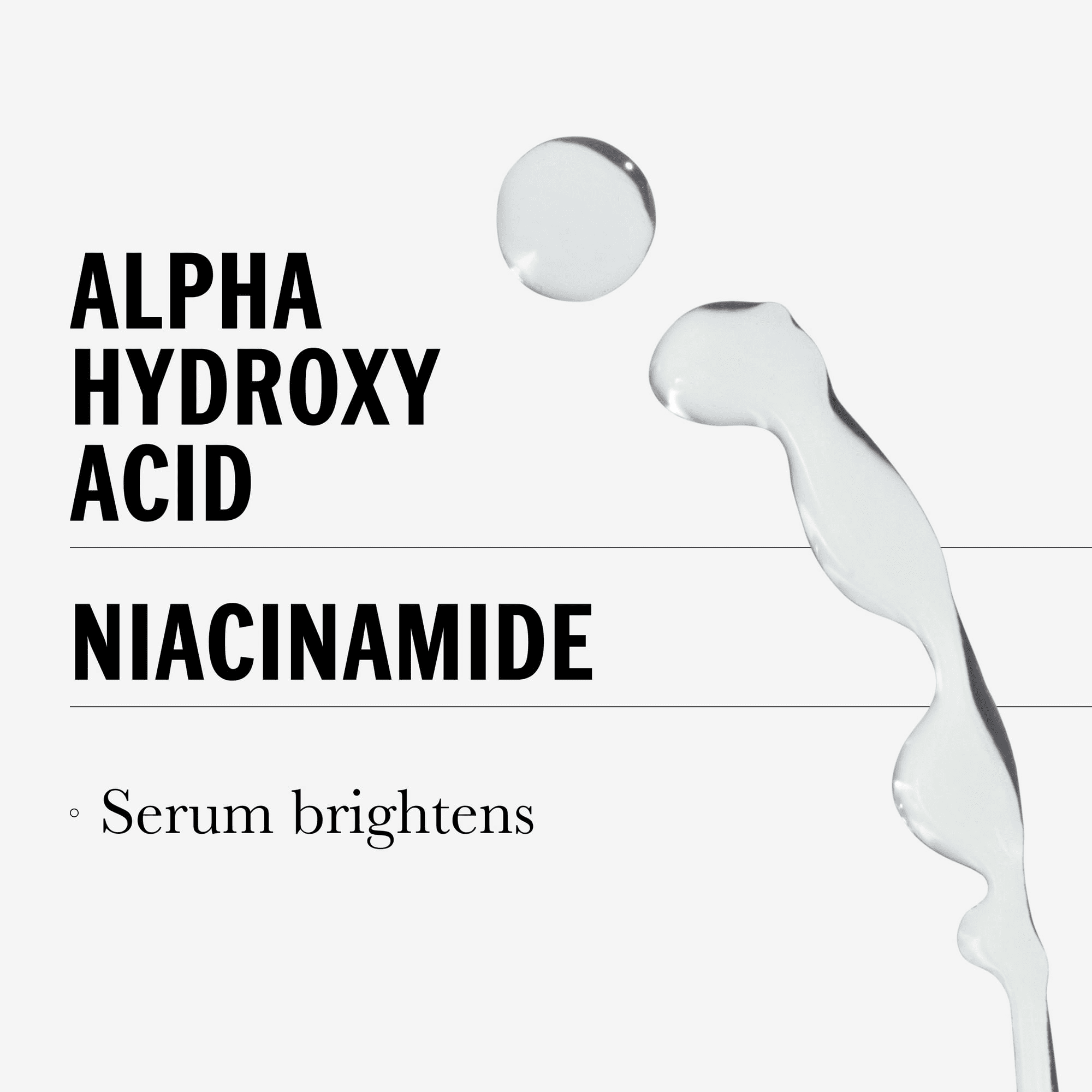 Add a little brightening boost to your skincare with olay's aha serum. This fragrance-free, oil-free, water-based formula will add an extra oomph to any skincare regimen. Our brightening formula is crafted with less than 10 ingredients, including aha (alpha hydroxy acid) and niacinamide, for a simply powerful skincare experience. It also can be used with most skin types - including oily skin. If you're looking for a truly personalized skincare experience - and who isn't? - pair this serum with your favorite moisturizer for customized skin care to meet your skin's unique needs.All of our olay serum boosters are crafted with clean ingredients, which means no parabens, no phthalates, no dyes, no mineral oil and no fragrance, because we know that some of the best transformations start with small, simple steps - like adding an ingredient-focused serum to your daily routine.