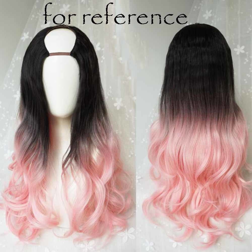Home > Pink Black 65 cm U Shape 2 Tone Long Curly Hair Wig Synthetic Full Wig Cosplay Halloween Dress Up