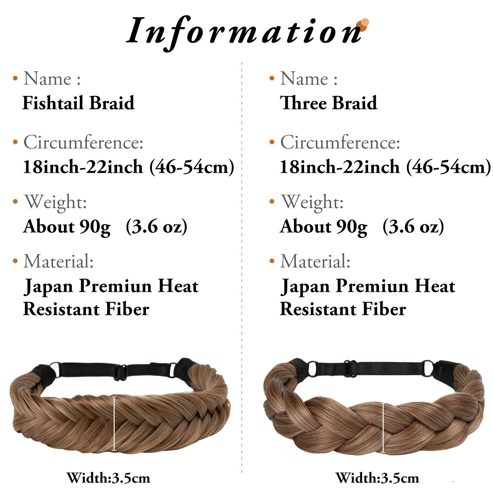 2.Braid performance: good air permeability, no tangles, no odor, light weight, good elasticity, fluffy appearance, no deformation, soft and durable, not easy to deform.The braided headband, available in a variety of colors, with a natural gradient, and an oversized braid, is tailored for the beauty you can imagine wearing it.