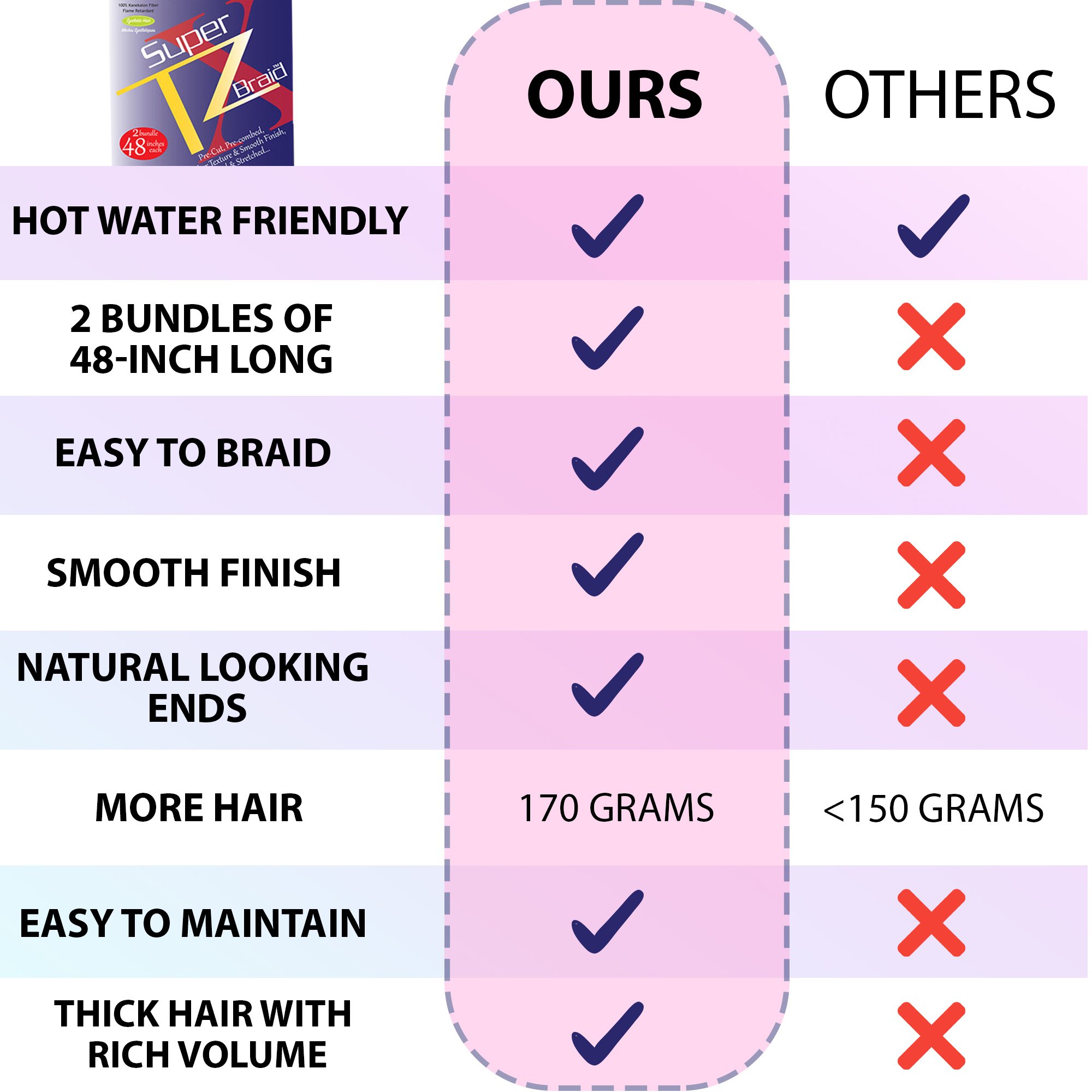 2.READY TO USE: Our Kanekalon hair extensions come prepared for braiding! The hair is pre-cut, pre-combed, and pre-stretched for easy braiding. You can run your fingers smoothly through your hair without getting stuck. The extensions come in 2 bundles per pack 48-inch long unfolded, ready to be braided in any style!