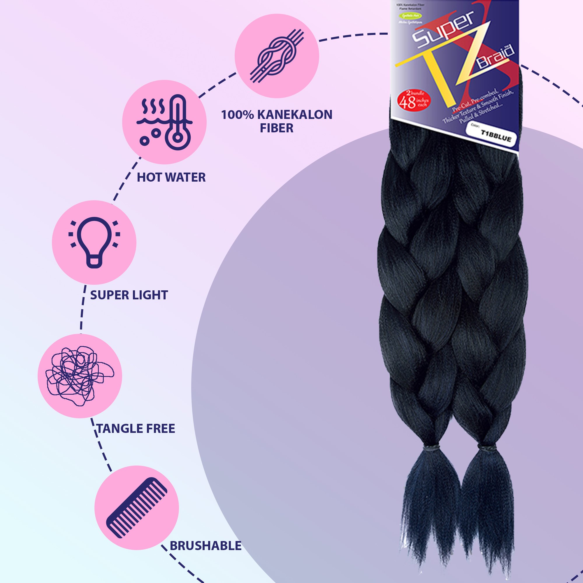 Our professional braid hair extensions are ready to make you look stunning! The extensions come ready to use, in 2 bundles of 48-inch long unfolded, pre-stretched and pre-combed, so you can style your braids in amazing ways, making your hair look fuller, thick and natural! Made with 100% Kanekalon fiber, these hair extensions have a smooth finish, being super light, soft and with a natural glow, that will make you look gorgeous. Our extensions are safe to dip in hot water, which softens and smooths the synthetic hair, making it more manageable to style your hair straight, curly, crochet, or other styles.
