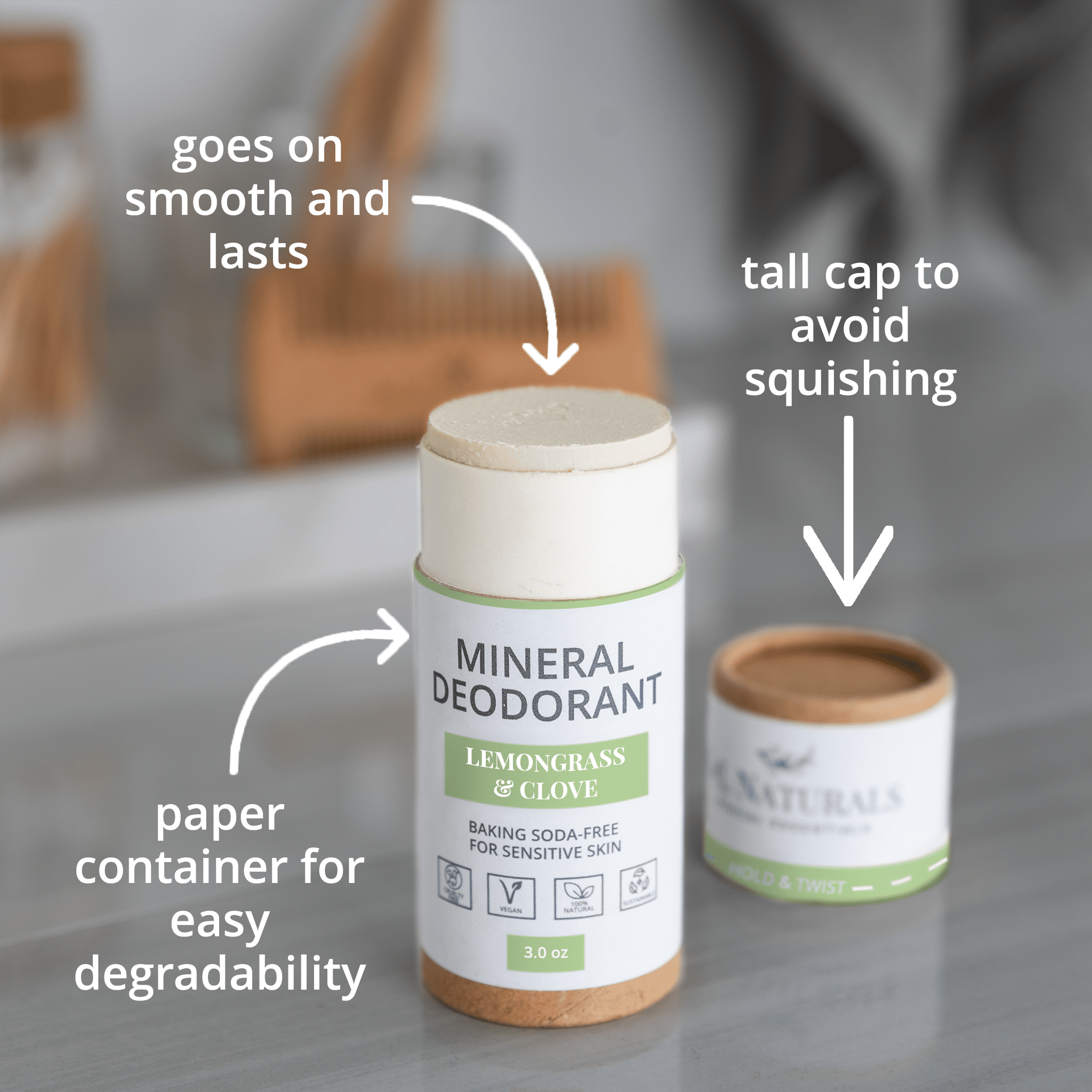 Wherever you go, feel confident knowing your deodorant has you covered. This Mineral Deodorant glides on smoothly, while effectively killing bacteria, preventing body odor, and allowing you to sweat naturally. It is baking soda-free and suitable for extra sensitive skin. No harsh, stinging feeling, irritation, or synthetic-smelling fragrances.