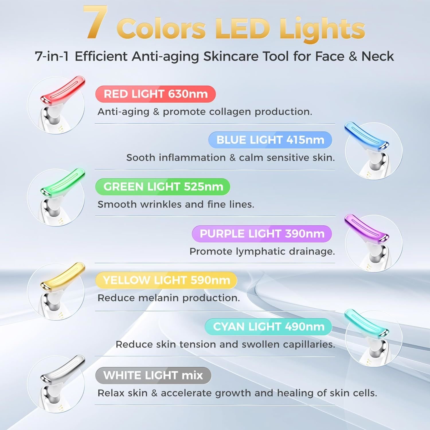 2.[Anti-Aging for Face and Neck] This multifunctional face neck massager has 7 different LED light modes that are not only suitable for massaging the face, neck but also can be used to massage the arms, shoulders and other parts, tightening the sagging skin and relaxing the muscles.