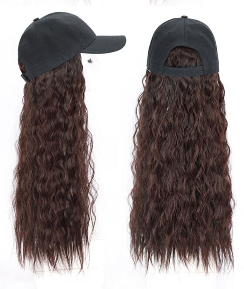 Home > Synthetic Hair Extensions Long Curly Corn Wave Hair Attached With Baseball Cap, Dark Brown