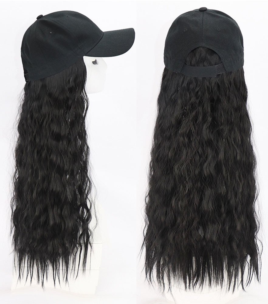 Synthetic Hair Extensions Long Curly Corn Wave Hair Attached With Baseball Cap, Nature Black Wig Cap Synthetic Hair Extensions Long Curly Corn Wave Hair Attached With Baseball Cap, Nature Black Wig Cap